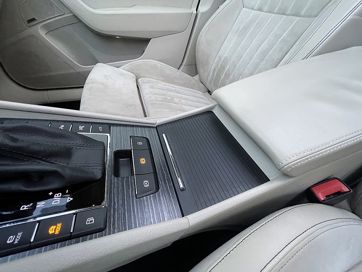 - Ablagefach (mit Deckel) vor dem Schalthebel